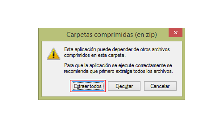 A window will open where you must press “Extract all” to decompress all the files required to use the unlocking program…