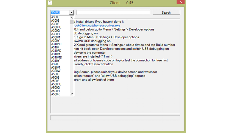 - Connect your Samsung to your PC, wait a few seconds for your PC to recognize it and then press the “Search” button so the software you have installed can start unlocking your Samsung. Wait for the process to finish and display the following message: “Unlock Successful”.